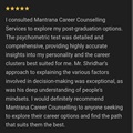 Mantrana Career Counseling Services' vision is to democratize career counseling, making it accessible from urban centers to the remotest villages. We strive to become the most trusted partner for students, fostering confident, future-ready individuals through holistic career guidance, a strong value system, responsible digital habits, and world-class educational pathways.